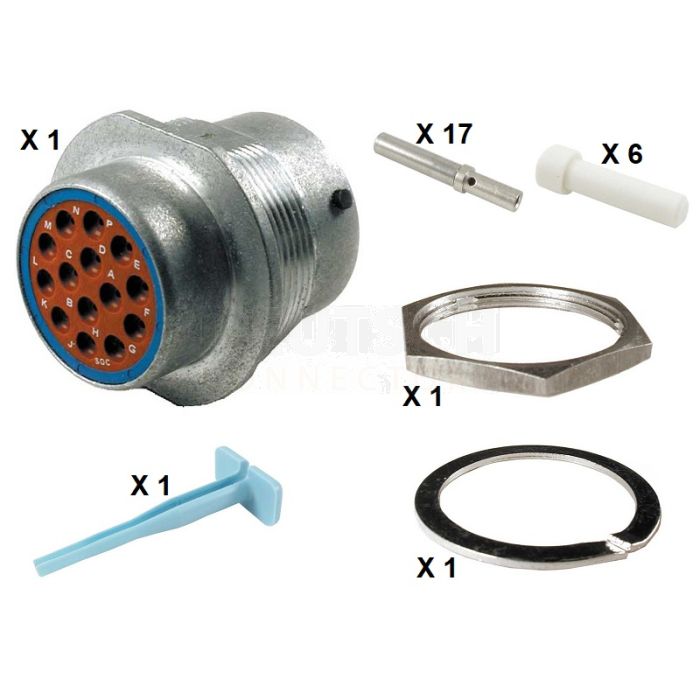 14 WAY HD SERIES DEUTSCH SIZE 18 RECEPTACLE KIT (INCLUDES NUT, WASHER, SOCKETS, BLANKS AND REMOVAL TOOL)