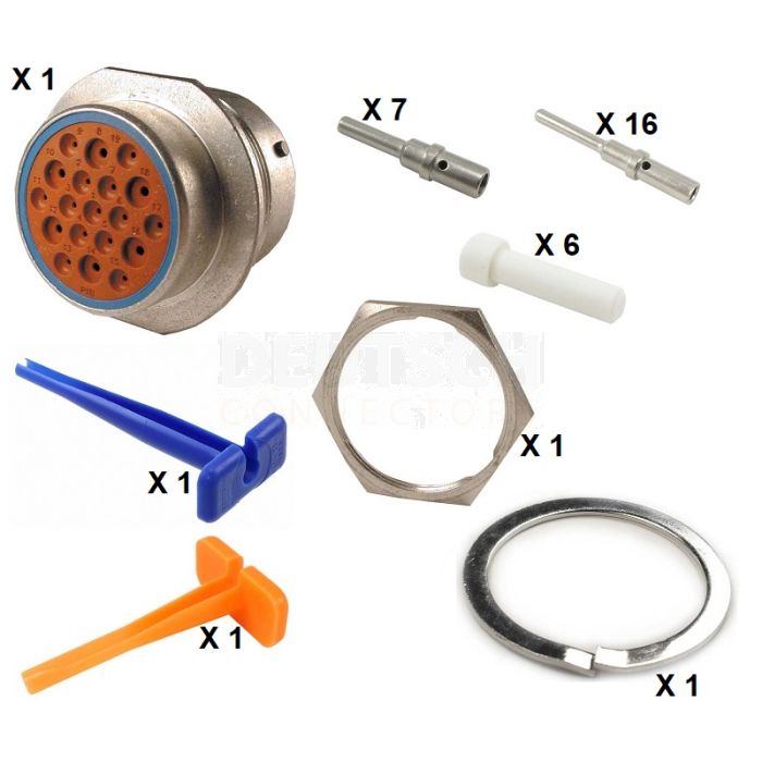 19 WAY HD SERIES DEUTSCH SIZE 24 RECEPTACLE KIT (INCLUDES NUT, WASHER, PINS, BLANKS AND REMOVAL TOOL)