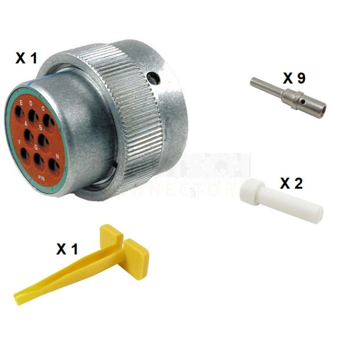 8 WAY HD SERIES DEUTSCH SIZE 18 PLUG KIT (INCLUDES NUT, WASHER, PINS, BLANKS AND REMOVAL TOOL)